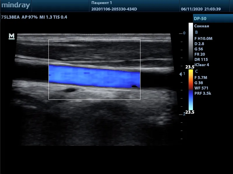 Автоматическое измерение толщины передней и задней стенки, предоставляющее точную информацию о состоянии сонной артерии.