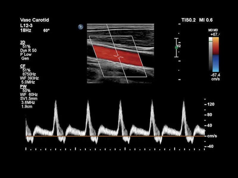 - Функция Auto Doppler сокращает количество шагов размещения цветового окна и контрольного объема до трех, а также уменьшает количество повторных нажатий на клавиши в среднем на 67,9%.