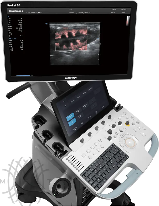 SonoScape ProPet 70 — это флагманская модель ультразвуковой системы последнего поколения из ветеринарной серии SonoScape, разработанная с учетом высоких требований современной ветеринарной диагностики. Устройство обеспечивает выдающееся качество визуализации, обладает широкими функциональными возможностями и поддерживает большой выбор специализированных датчиков для различных видов животных. Система оснащена профессиональным программным обеспечением, оптимизированным для ветеринарного применения, а также эргономичным дизайном, тщательно продуманным для комфорта в повседневной клинической практике. Линейка ProPet полностью соответствует актуальным стандартам и потребностям ветеринарных врачей, обеспечивая точную диагностику и высокий уровень эффективности в работе.